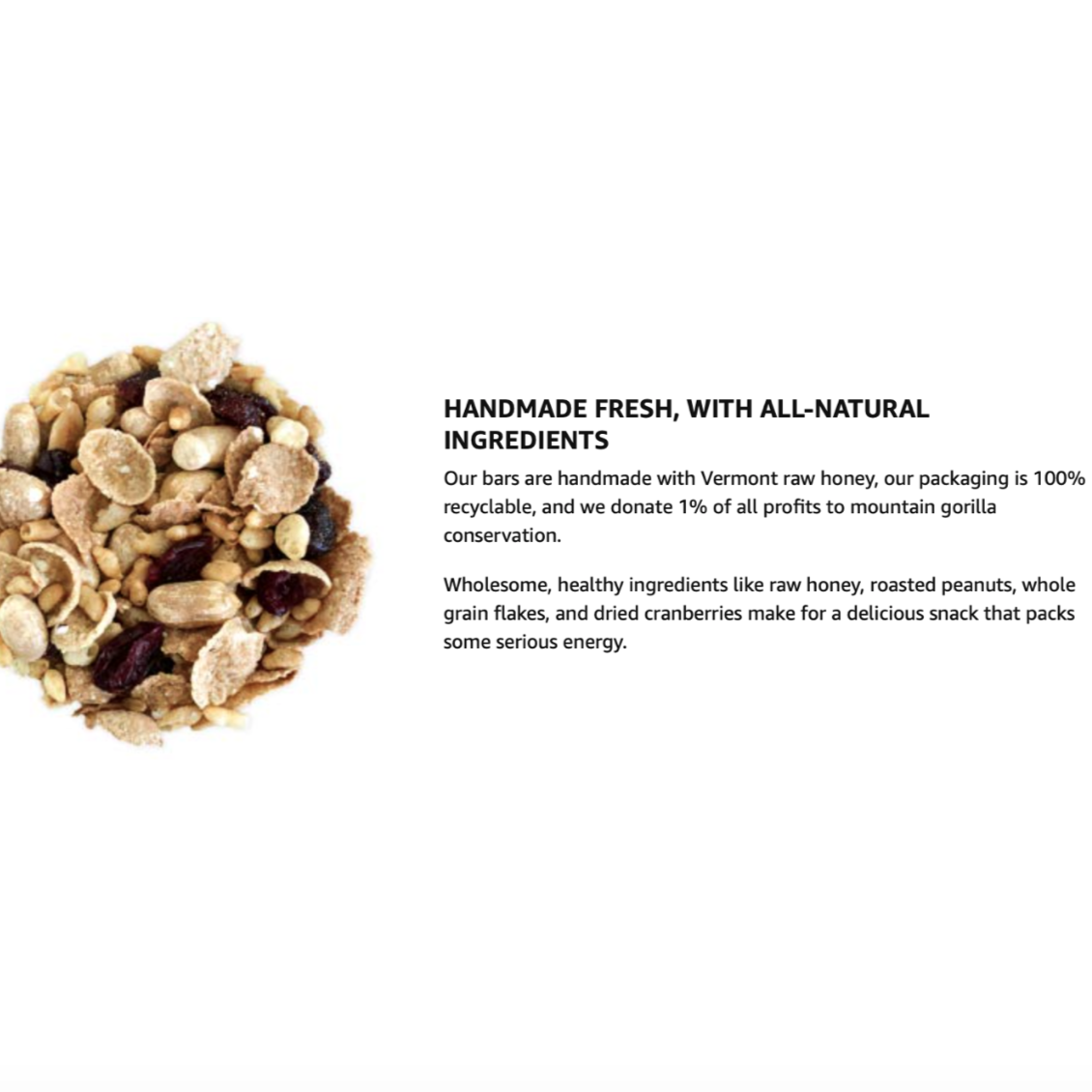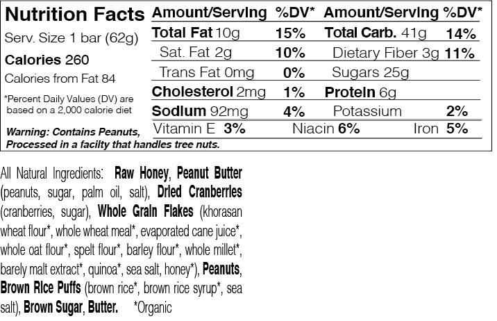 Garuka Bars are a handmade all natural snack bar with Vermont raw honey, dried cranberries, and peanuts to provide the best tasting, best source for pre-exercise energy.